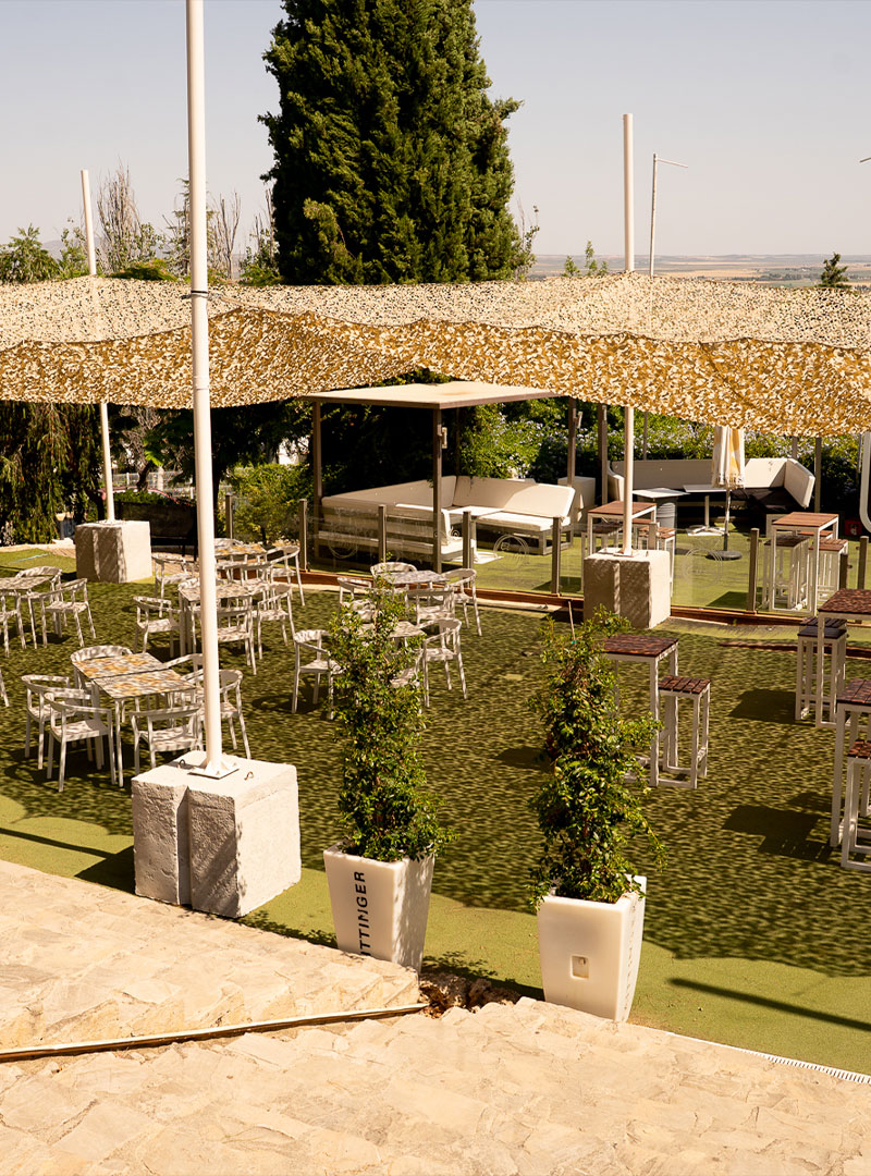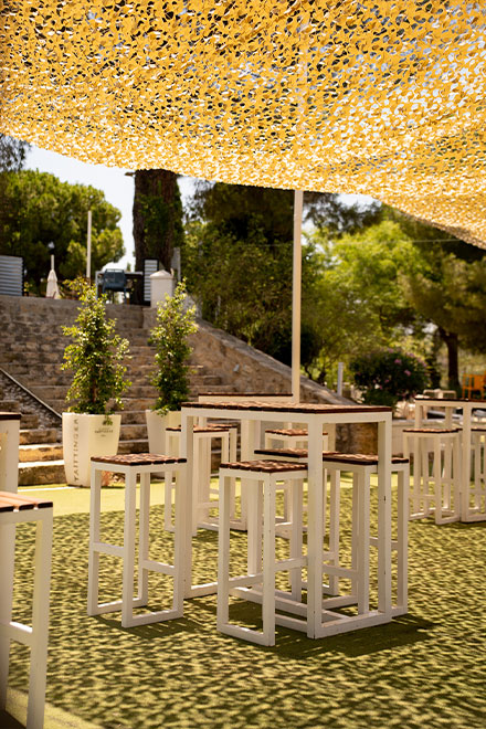 Además, contamos con una exclusiva terraza de verano tipo chill out, un ambiente perfecto para disfrutar de una copa y que, en ocasiones especiales, se llena de vida con música en directo y conciertos.